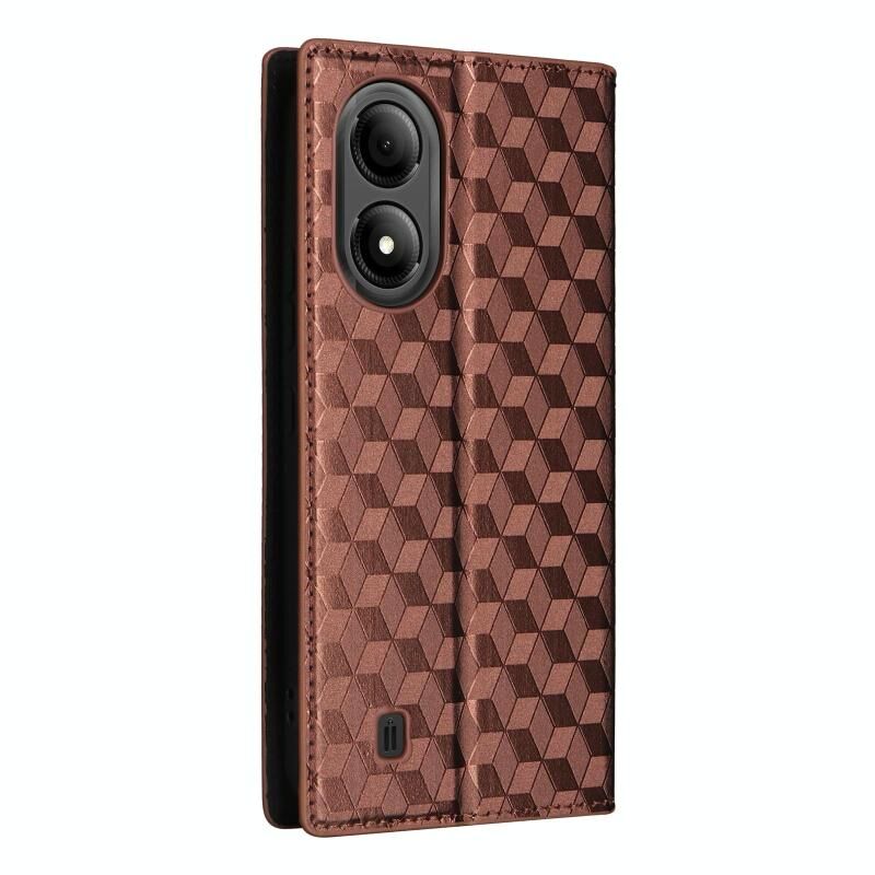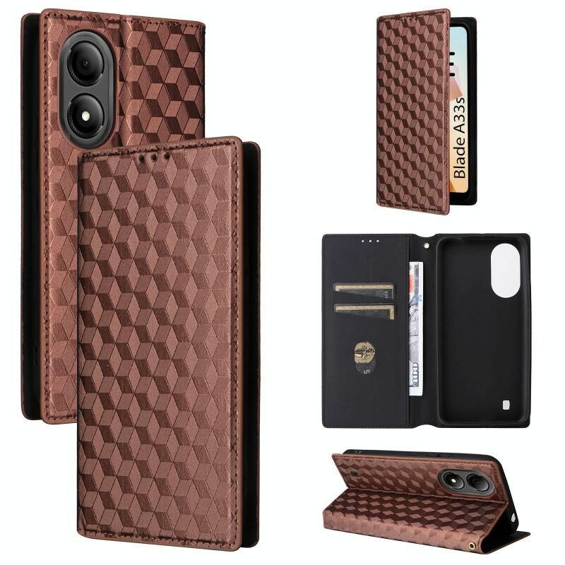 For ZTE Blade A33s Cubic Grid Texture Flip Leather Phone Case(Brown)