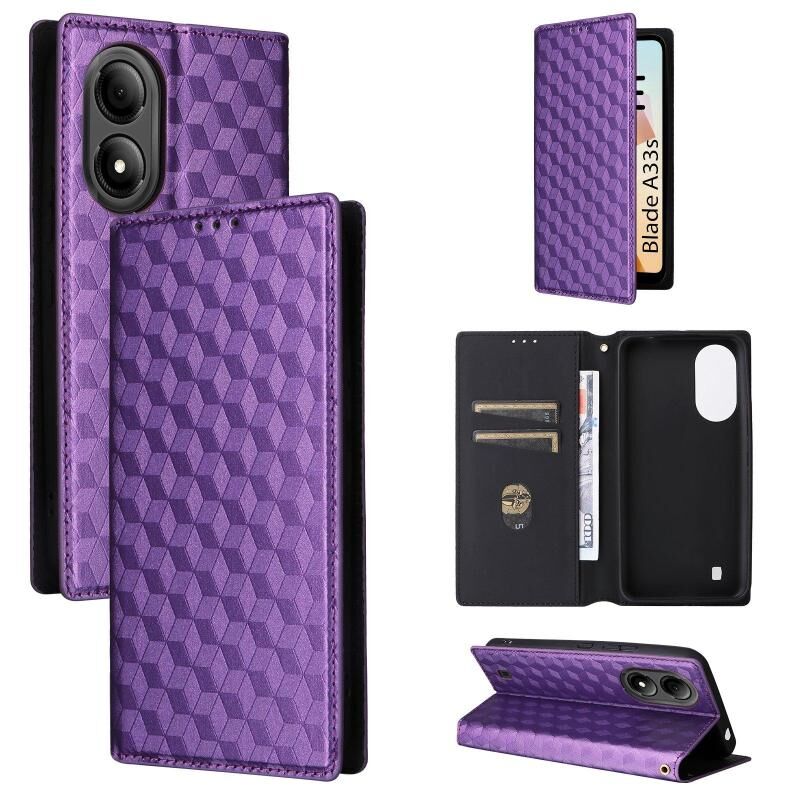 For ZTE Blade A33s Cubic Grid Texture Flip Leather Phone Case(Purple)