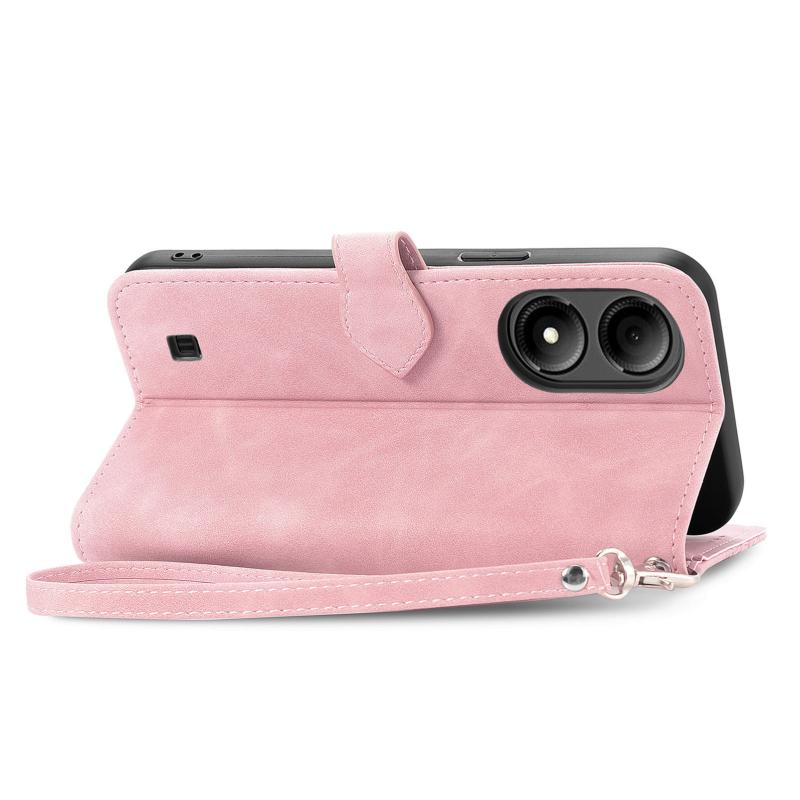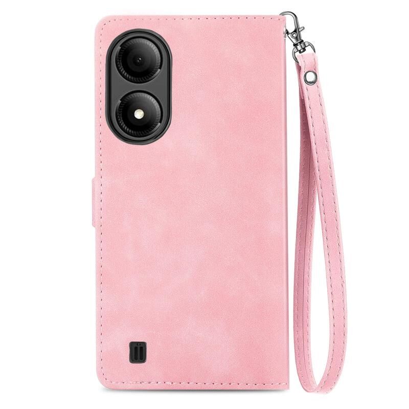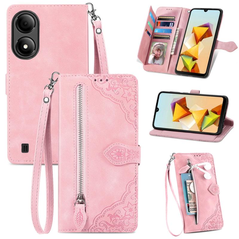 For ZTE Blade A33S Embossed Flower Zipper Leather Phone Case(Pink)