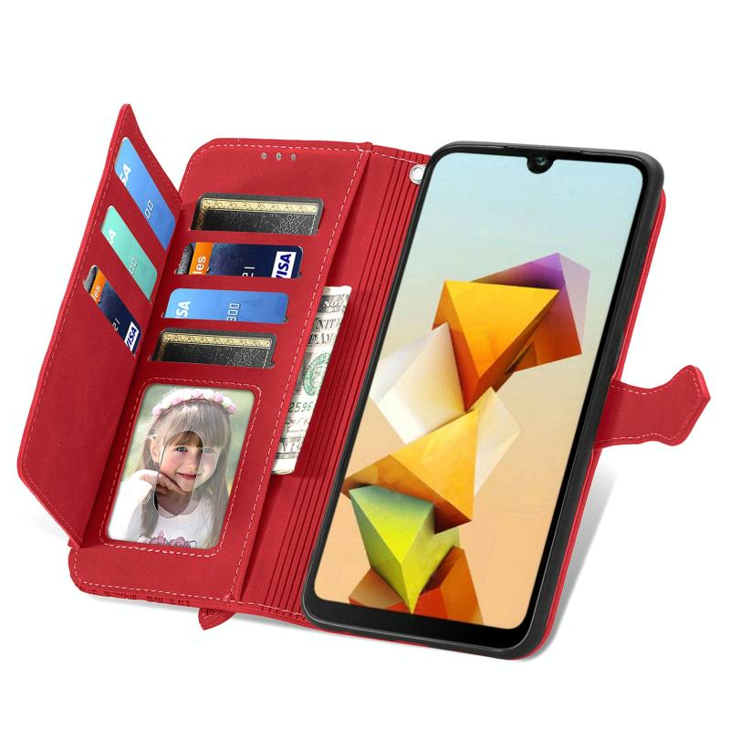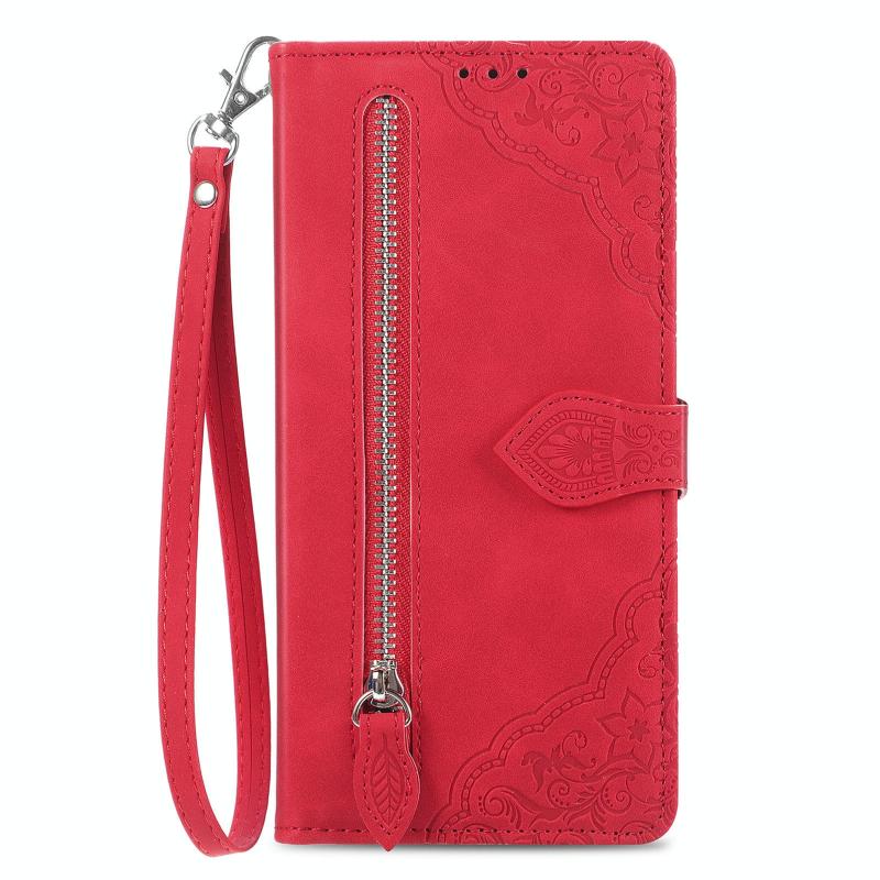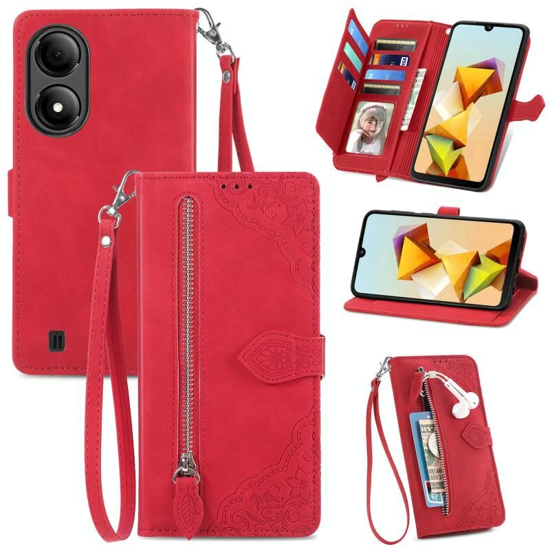For ZTE Blade A33S Embossed Flower Zipper Leather Phone Case(Red)