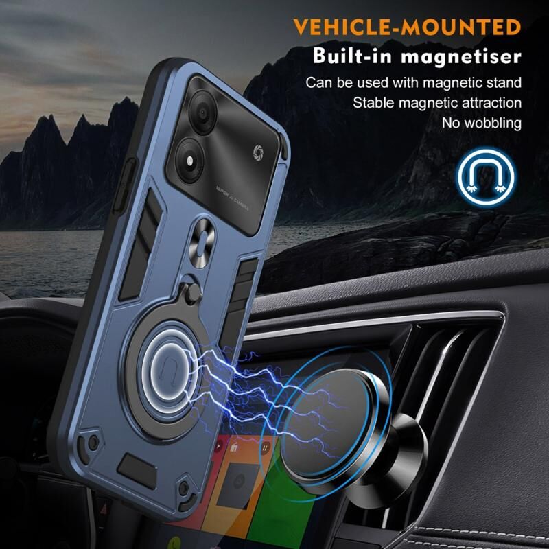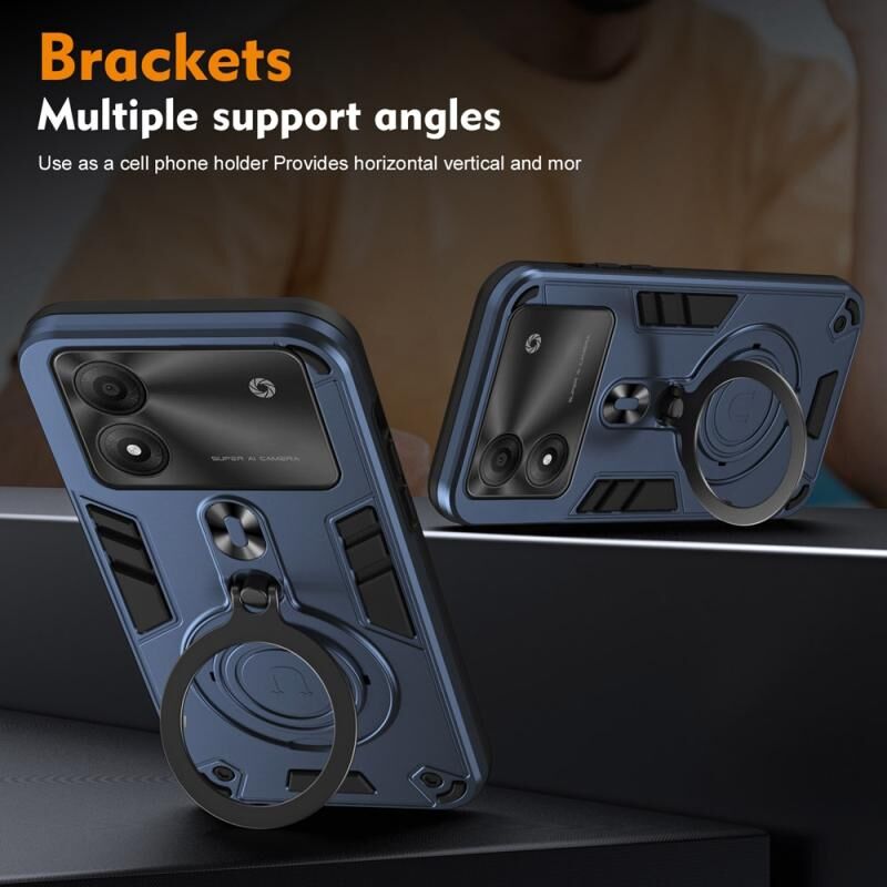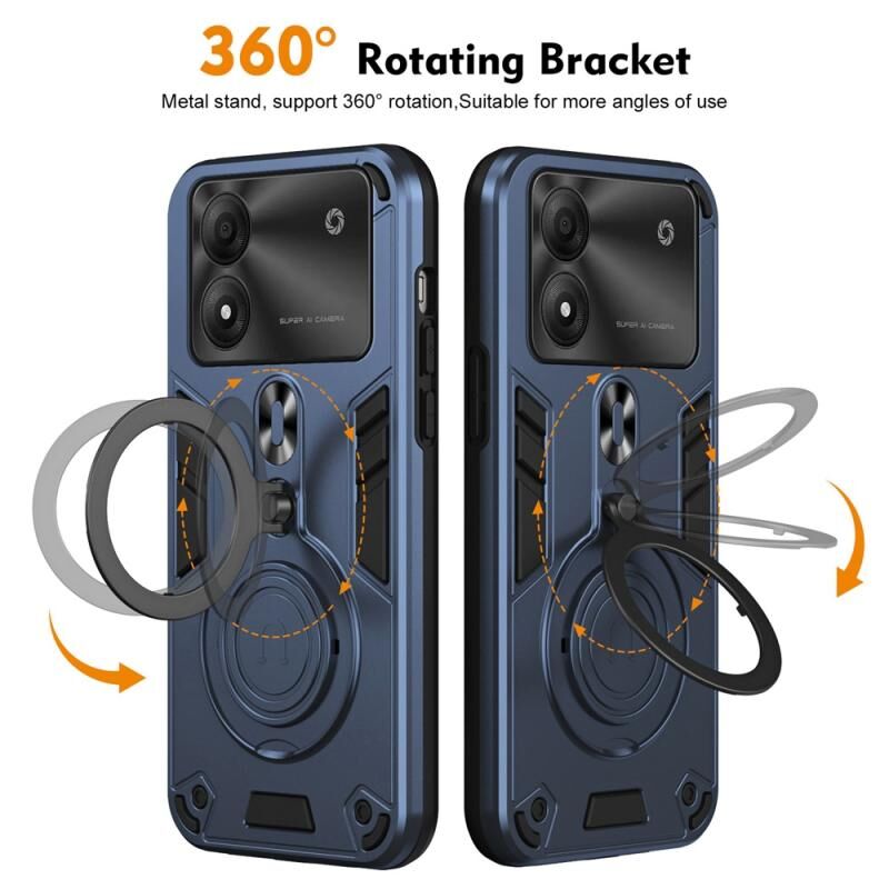 Για ZTE Blade A34 / A54 Μεταλλικό δαχτυλίδι 360 μοίρες περιστρεφόμενο κάτοχος PC υβριδικό TPU τηλέφωνο υπόθεση (Navy Blue)