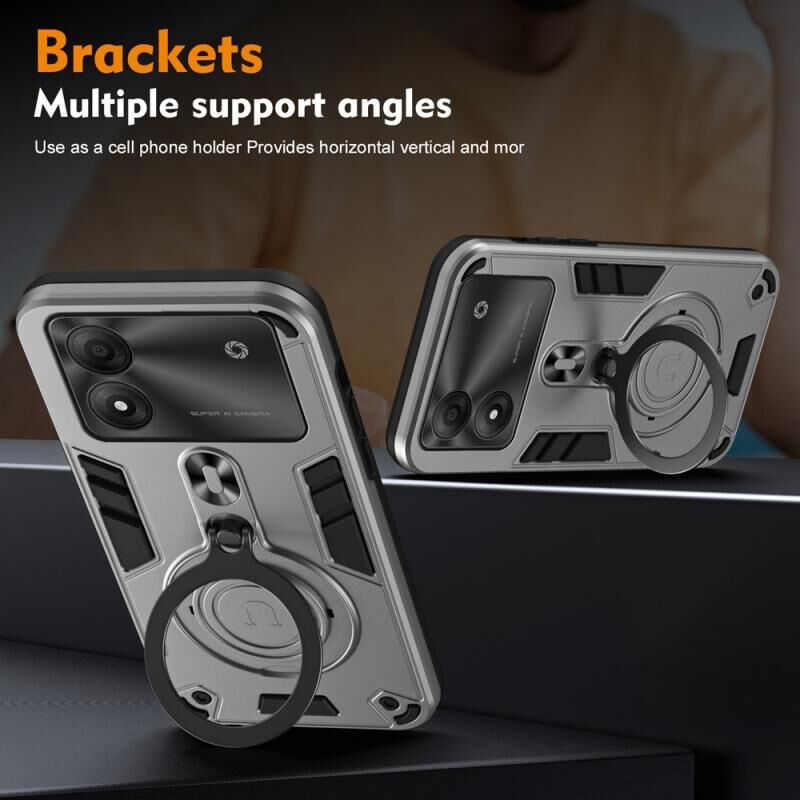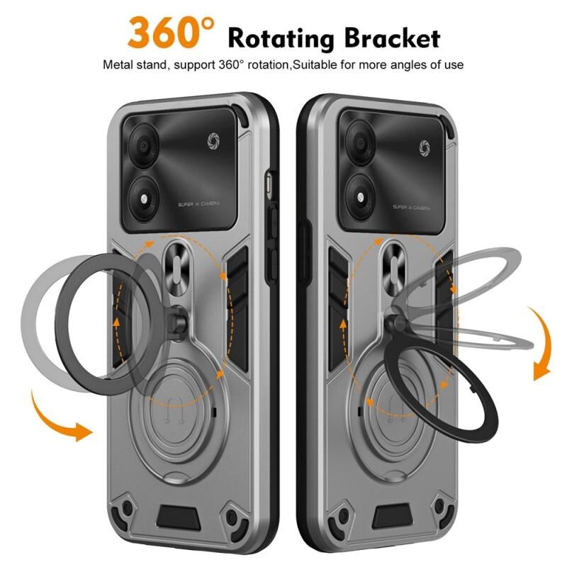 Για ZTE Blade A34 / A54 Μεταλλικό δαχτυλίδι 360 μοίρες περιστρεφόμενο κάτοχος PC υβριδικό TPU τηλέφωνο υπόθεση (ασημί γκρι)