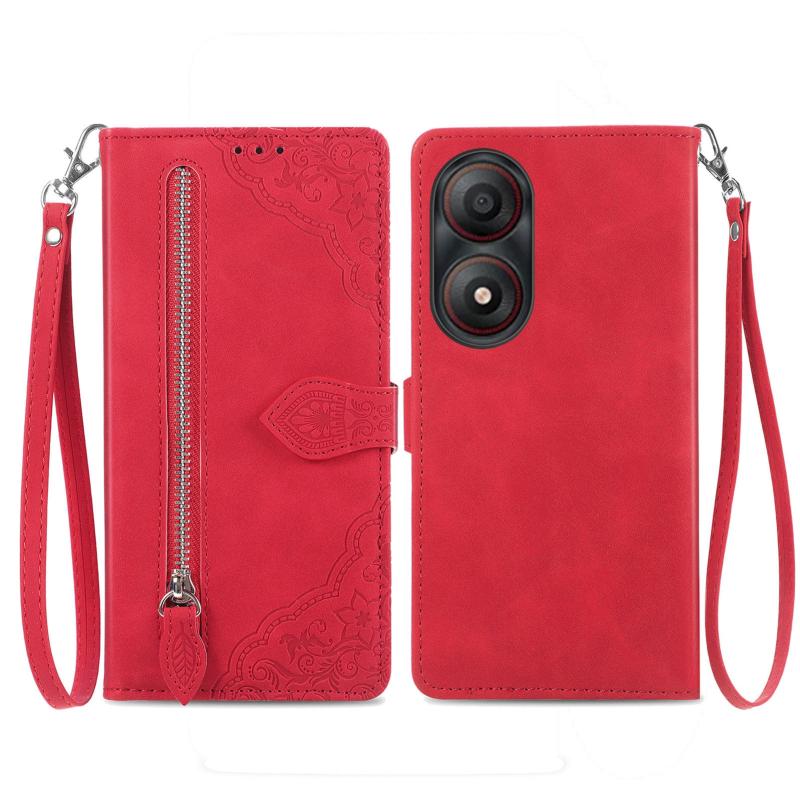 For ZTE Blade A34 Embossed Flower Zipper Leather Phone Case(Red)