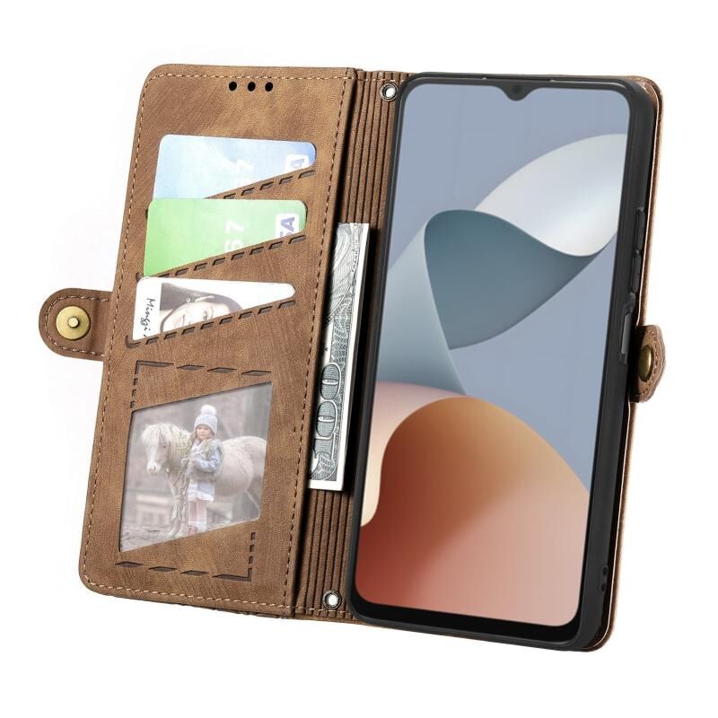 Για ZTE Blade A34 γεωμετρική φερμουάρ πορτοφόλι πλευρά πόρπη δερμάτινη θήκη τηλεφώνου (καφέ)