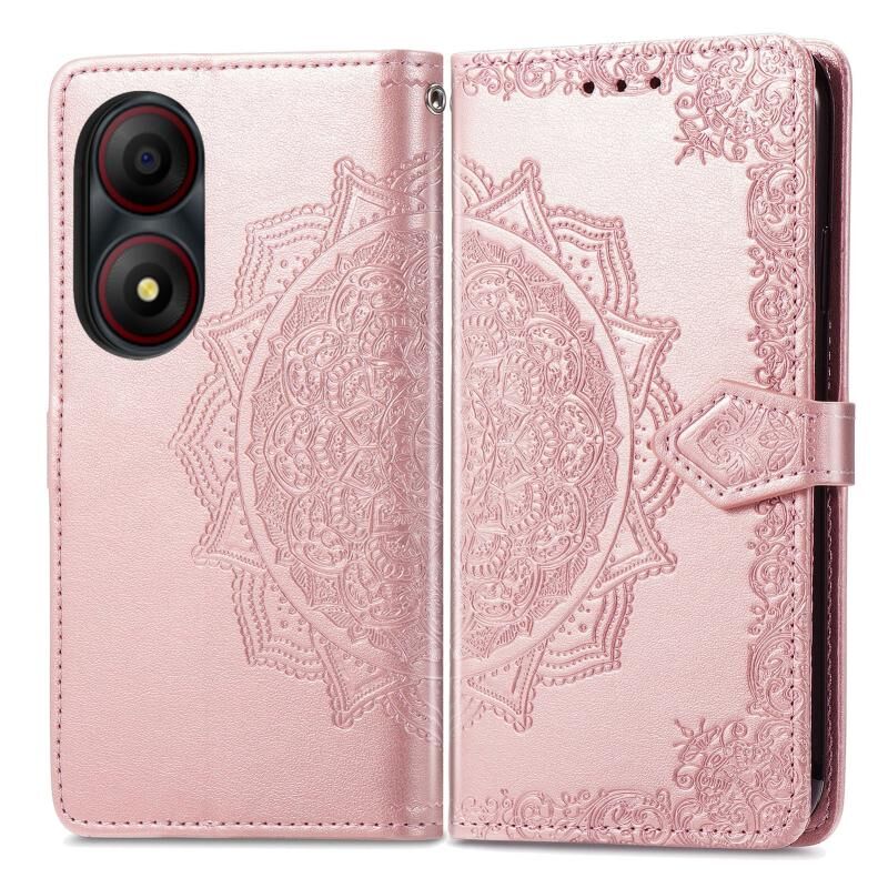 Για ZTE Blade A34 Mandala λουλούδι ανάγλυφο δερμάτινη θήκη τηλεφώνου (Rose Gold)