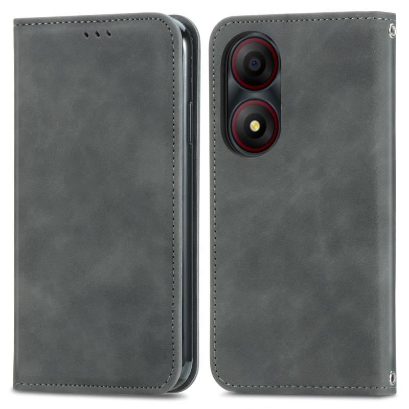 For ZTE Blade A34 Retro Skin Feel Magnetic Flip Leather Phone Case(Gray)