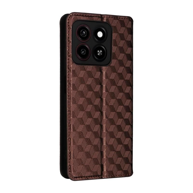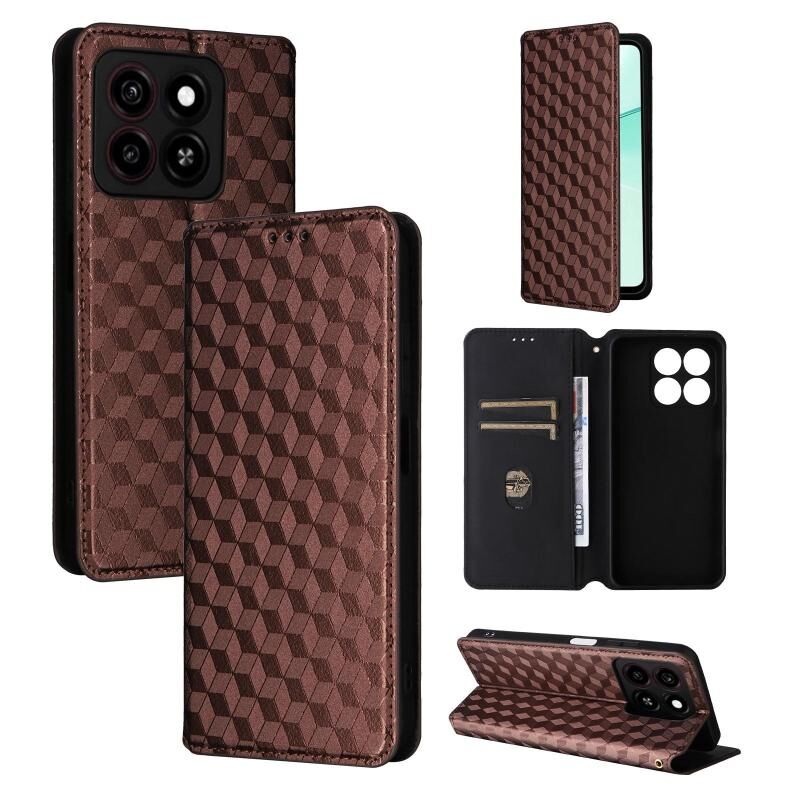 For ZTE Blade A35 / A55 Cubic Grid Texture Flip Leather Phone Case(Brown)