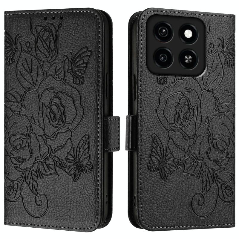For ZTE Blade A35 / A55 Embossed Rose RFID Anti-theft Leather Phone Case(Black)