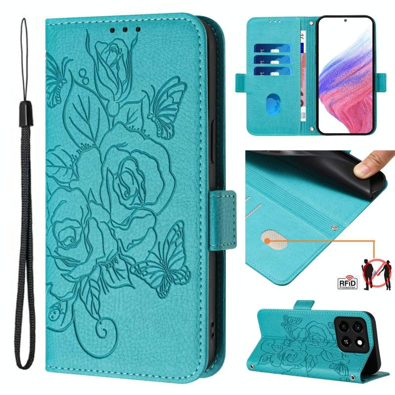 For ZTE Blade A35 / A55 Embossed Rose RFID Anti-theft Leather Phone Case(Light Blue)