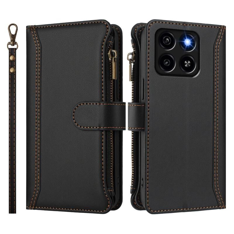 For ZTE Blade A35 / A55 Magnetic Closure 9 Card Slots Zipper Leather Case with Hand Strap(Black)