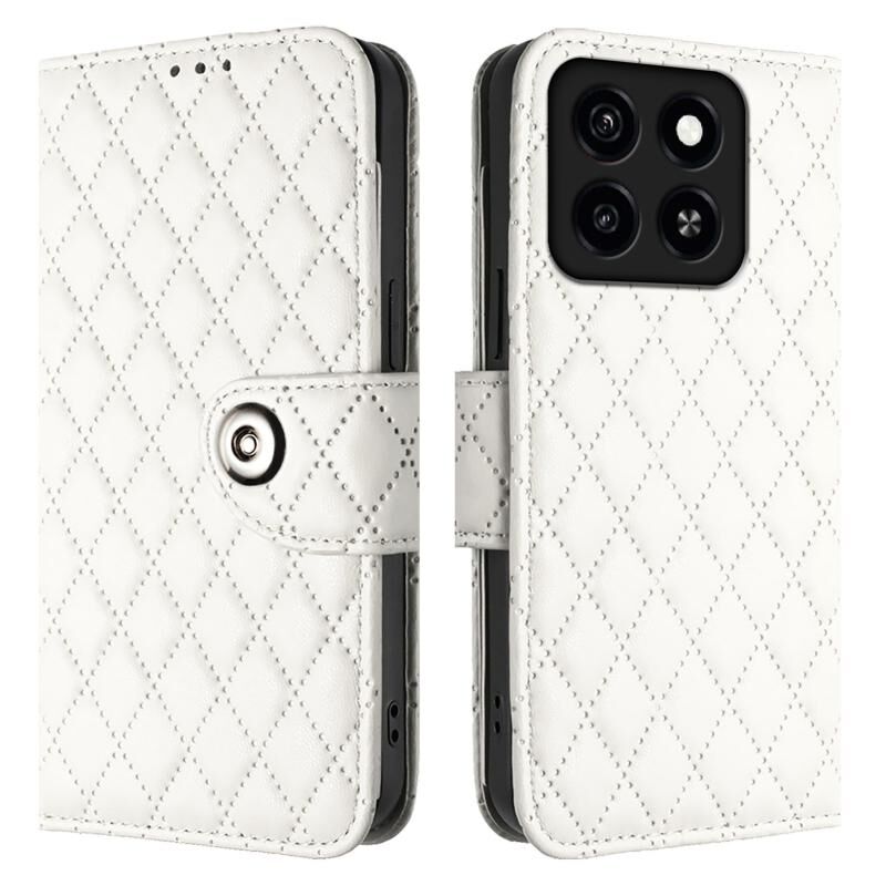 Για ZTE Blade A35 / A55 Rhombic Texture Flip δερμάτινη θήκη τηλεφώνου με κορδόνι (λευκό)