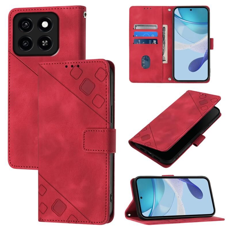 Για ZTE Blade A35 / A55 δέρμα αίσθηση ανάγλυφο δέρμα τηλέφωνο υπόθεση (κόκκινο)