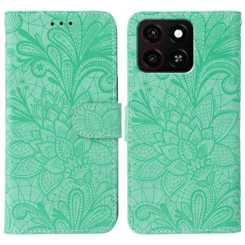 For ZTE Blade A35 Lace Flower Embossing Flip Leather Phone Case(Green)