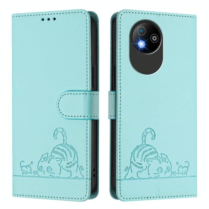 For ZTE Blade A35 Lite Cat Rat Embossed Pattern RFID Leather Phone Case with Lanyard(Mint Green)