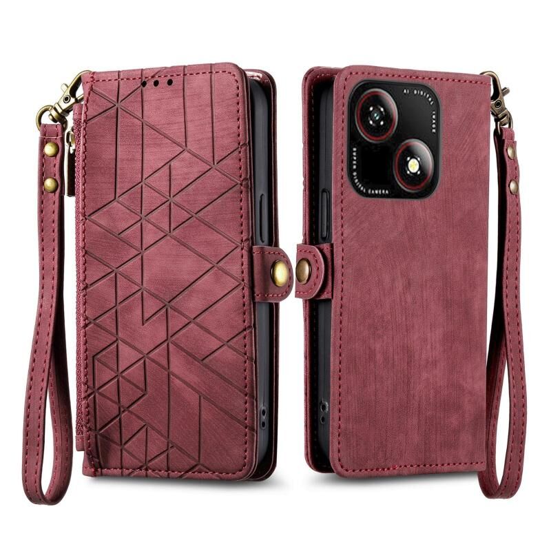 For ZTE Blade A35e 4G Geometric Zipper Wallet Side Buckle Leather Phone Case(Red)