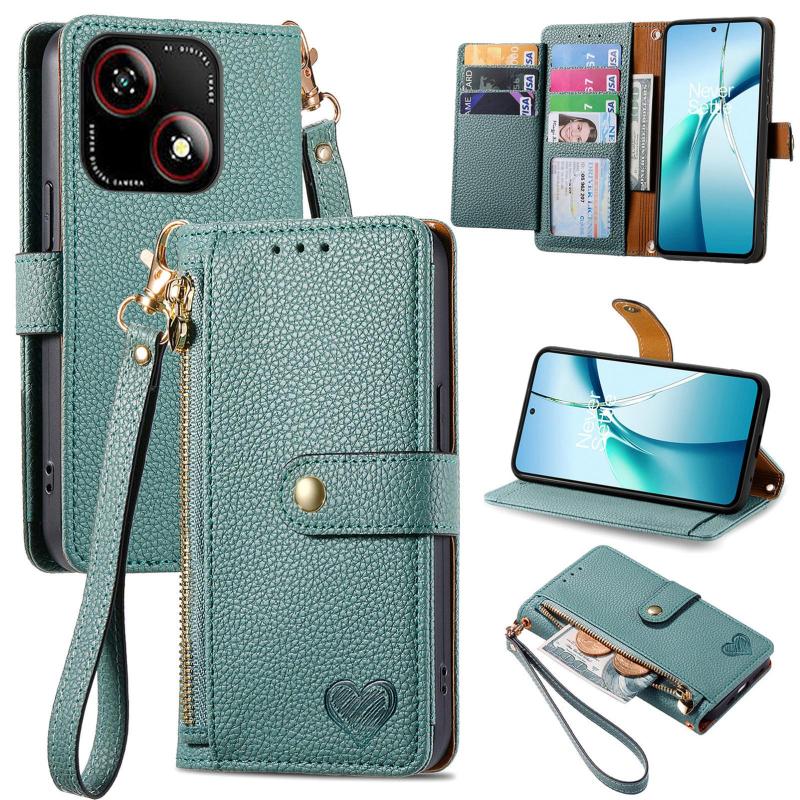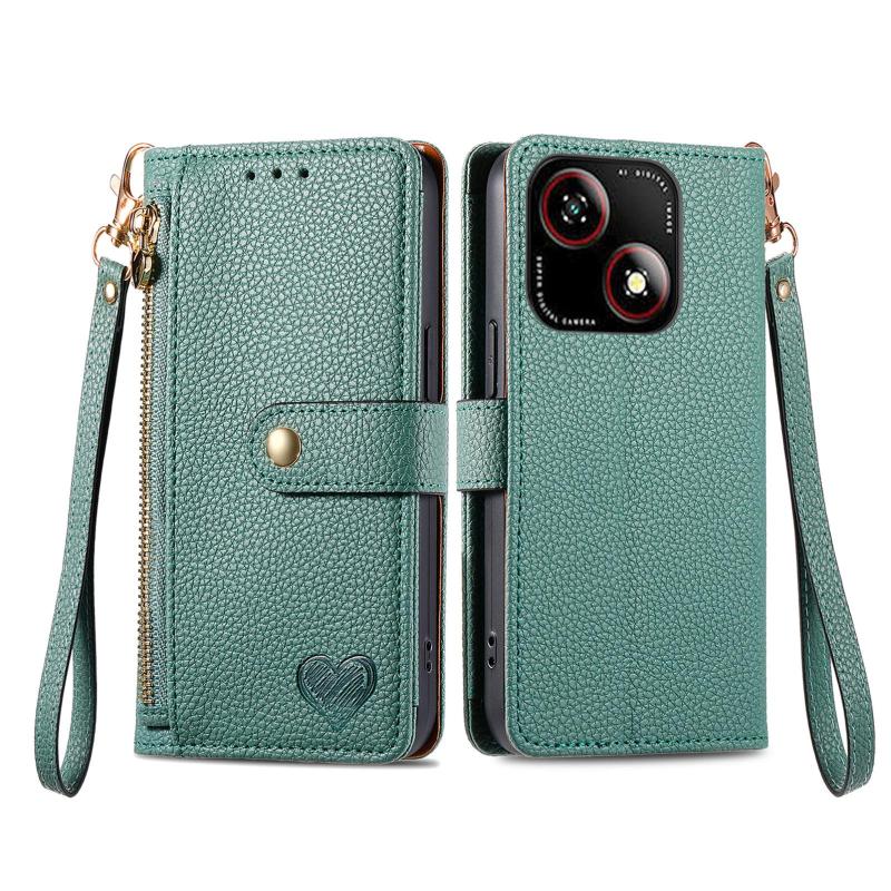For ZTE Blade A35e 4G Love Zipper Lanyard Leather Phone Case(Green)