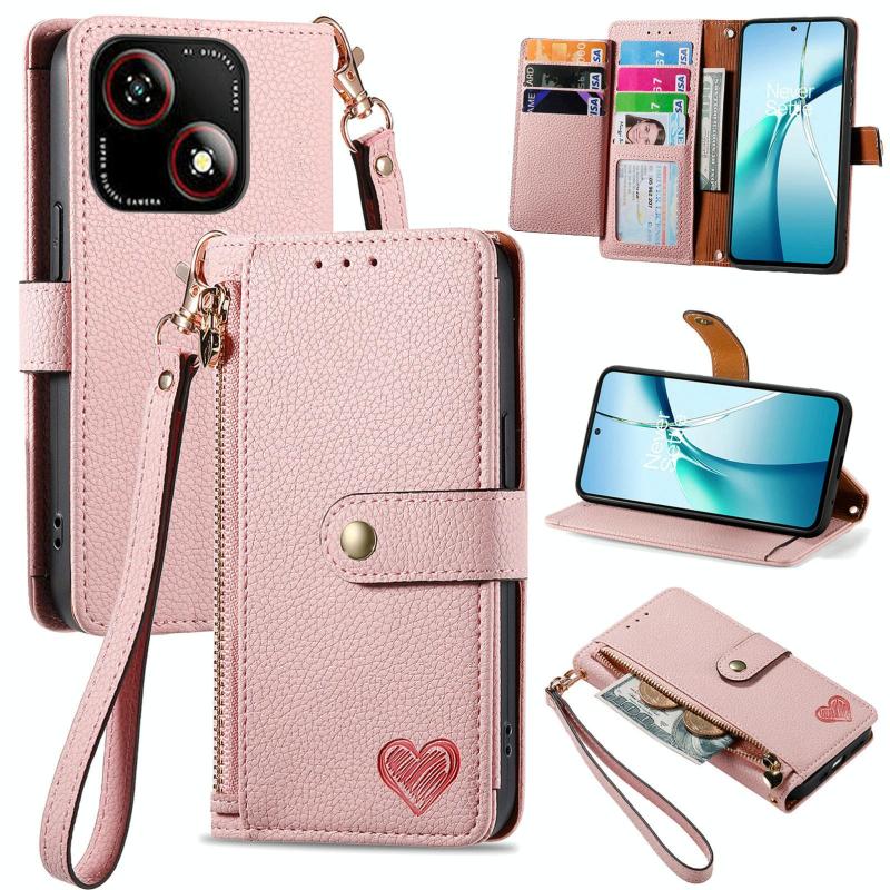 For ZTE Blade A35e 4G Love Zipper Lanyard Leather Phone Case(Pink)