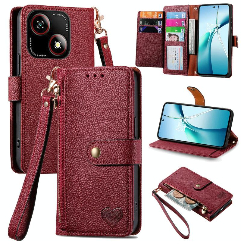 For ZTE Blade A35e 4G Love Zipper Lanyard Leather Phone Case(Red)