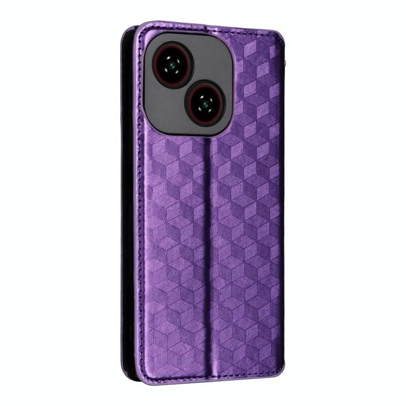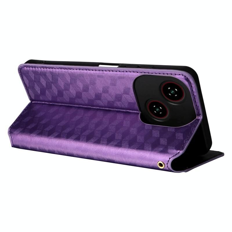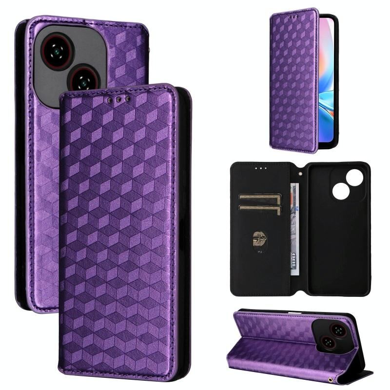For ZTE Blade A35e Global / Z2466 Cubic Grid Texture Flip Leather Phone Case(Purple)