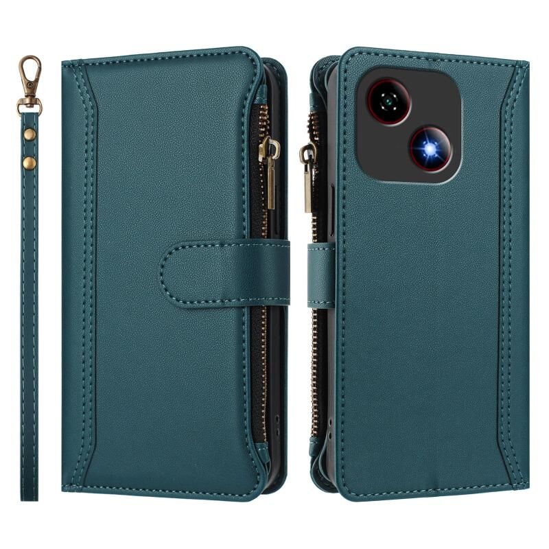 Για ZTE Blade A35E Μαγνητικό Κλείσιμο 9 Θήκες Κάρτας Δερμάτινη Θήκη με Φερμουάρ και Λουρί Χεριού (Σκούρο Μπλε)