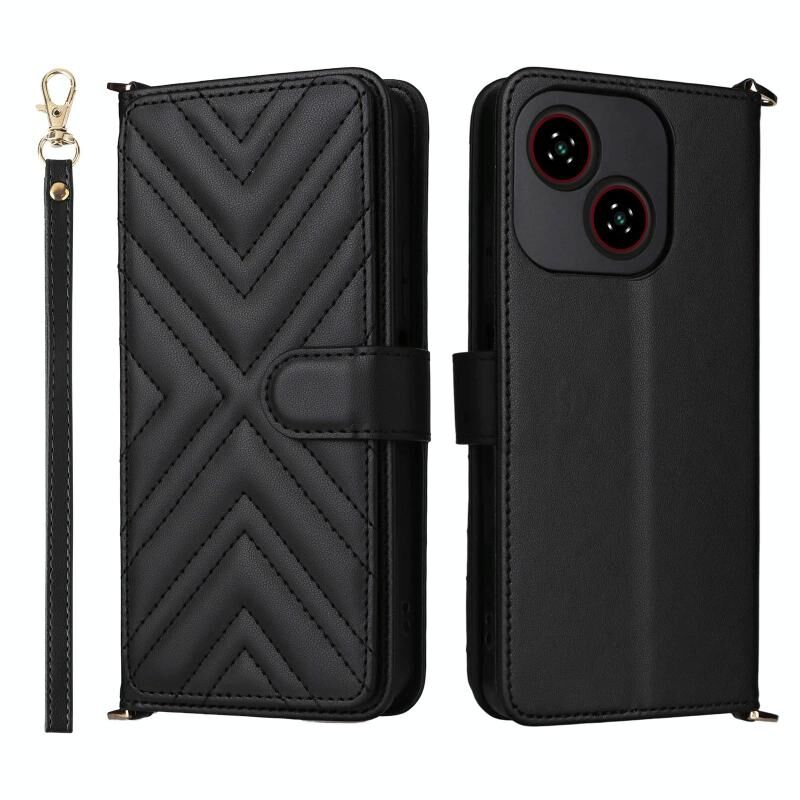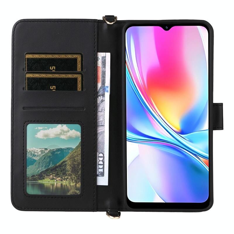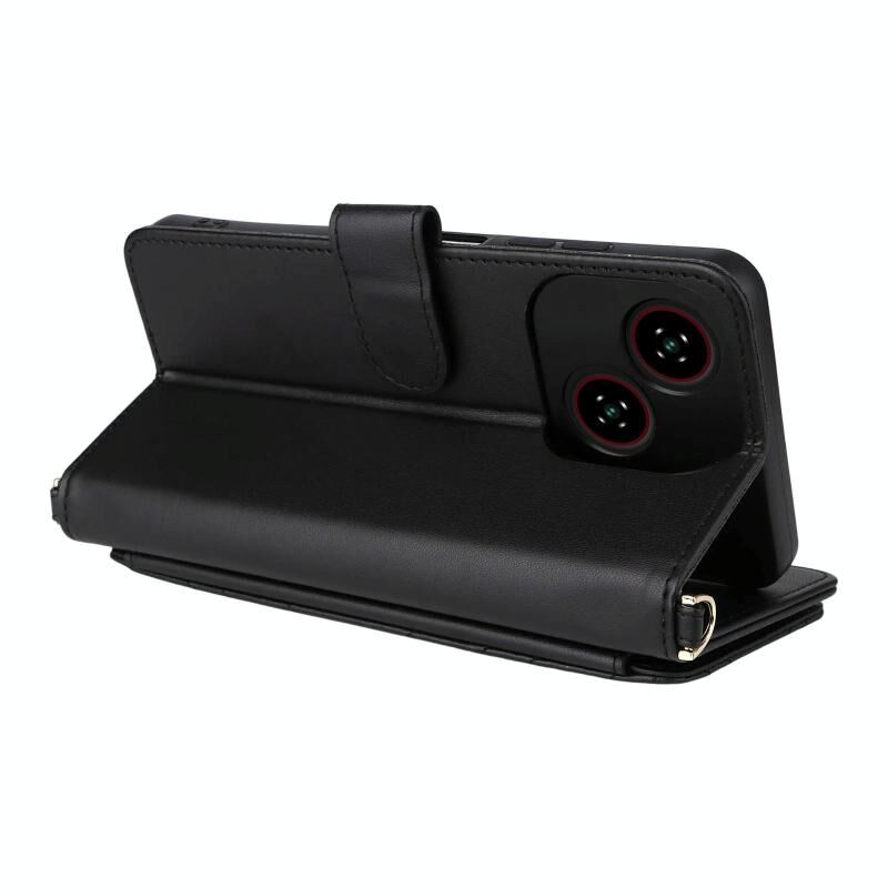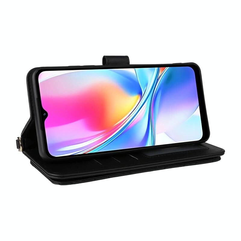 For ZTE Blade A35e Z2466 Multifunctional 6-Card Slots Leather Phone Case with Wrist Strap(Black)