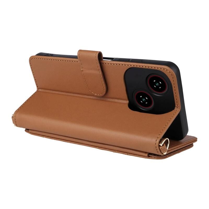 For ZTE Blade A35e Z2466 Multifunctional 6-Card Slots Leather Phone Case with Wrist Strap(Brown)