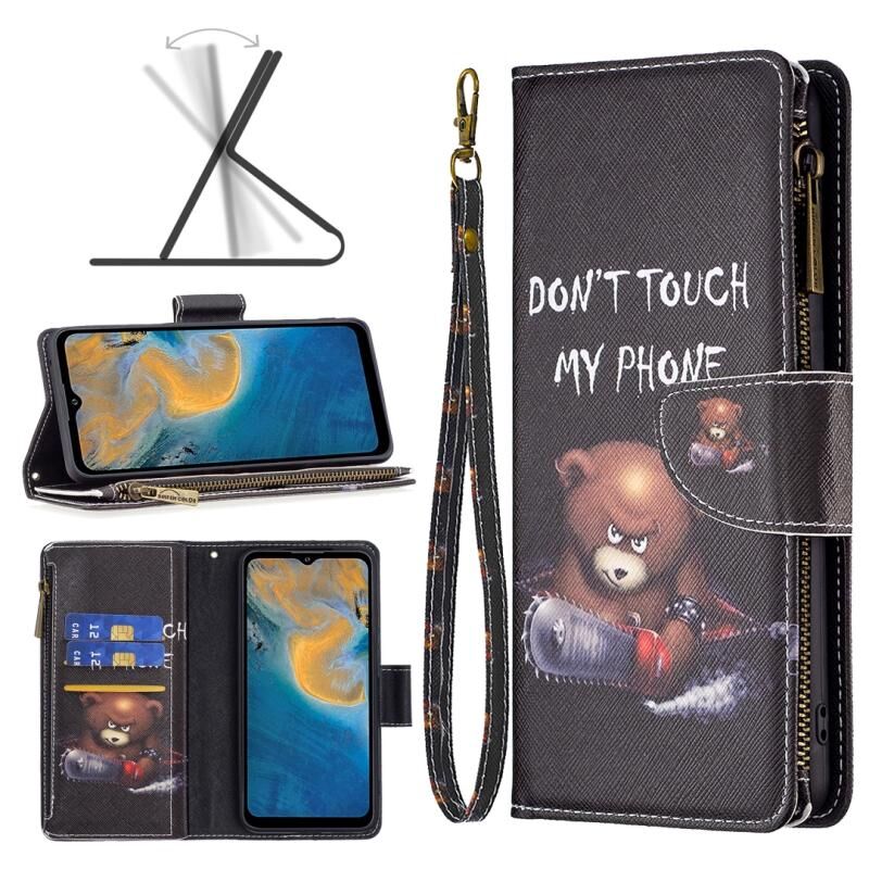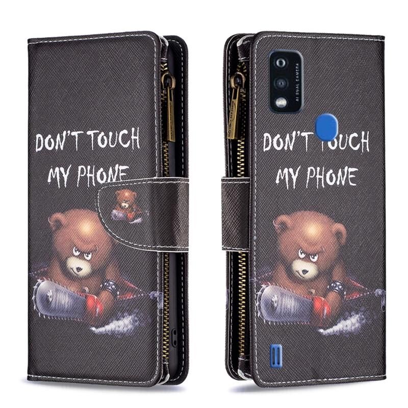 Θήκη τηλεφώνου από δέρμα με φερμουάρ και πολύχρωμο σχέδιο για ZTE Blade A51 (Αρκούδα)