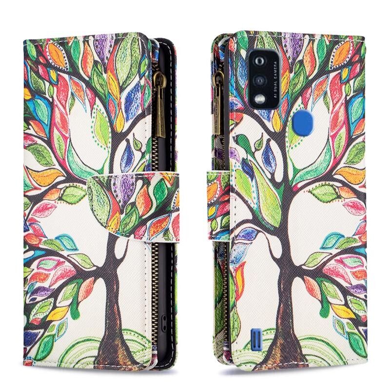 Θήκη τηλεφώνου από δέρμα με φερμουάρ και πολύχρωμο σχέδιο για ZTE Blade A51 (Μεγάλο Δέντρο)