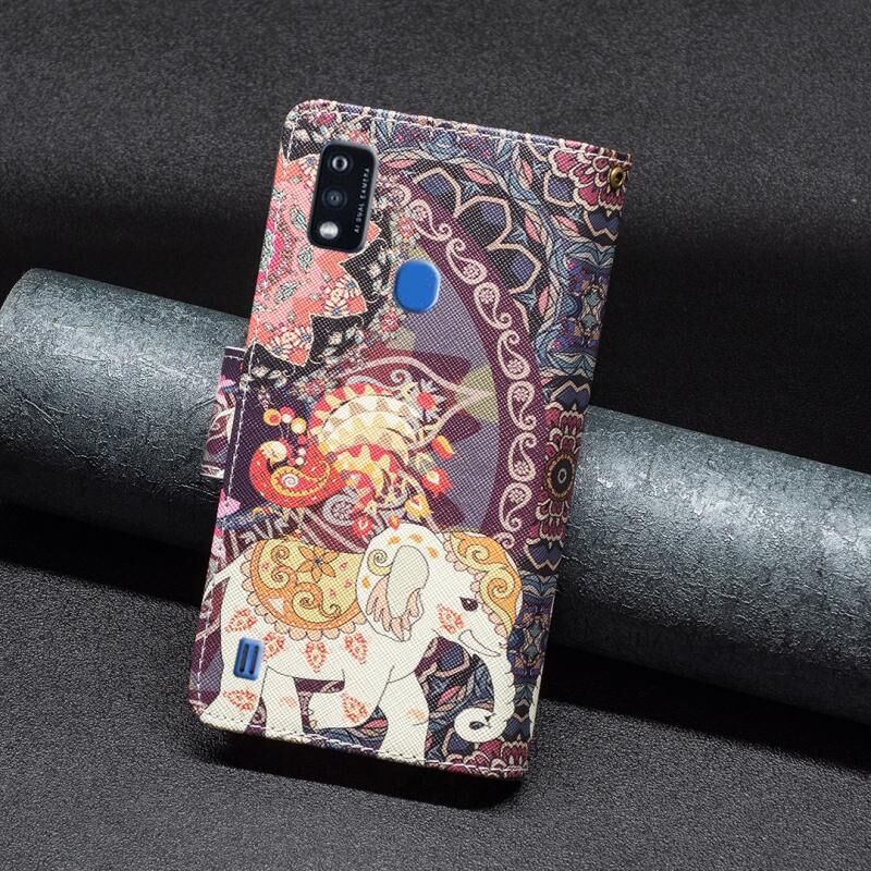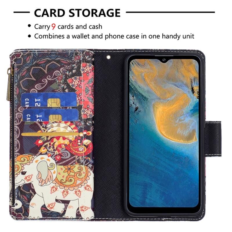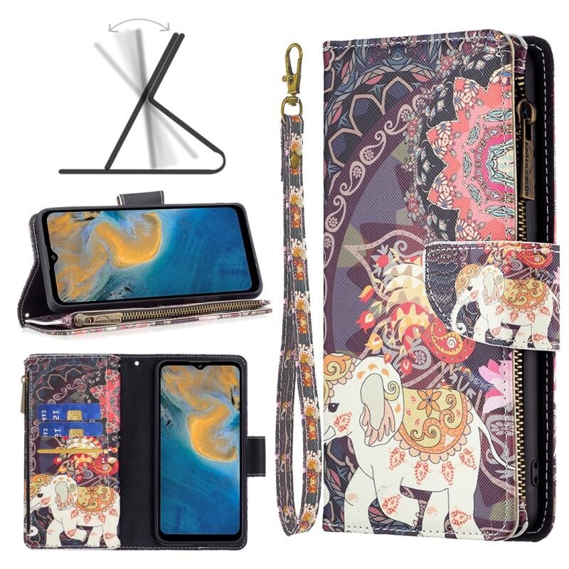 Θήκη τηλεφώνου από δέρμα με φερμουάρ και πολύχρωμο σχέδιο για ZTE Blade A51 (Λουλούδια και Ελέφαντες)