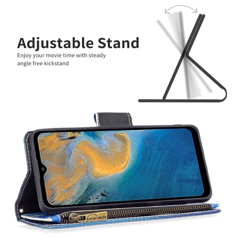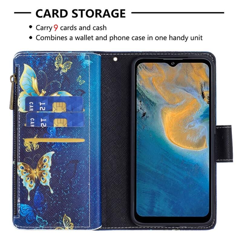 Θήκη τηλεφώνου από δέρμα με φερμουάρ και πολύχρωμο σχέδιο για ZTE Blade A51 (Μωβ Πεταλούδα)