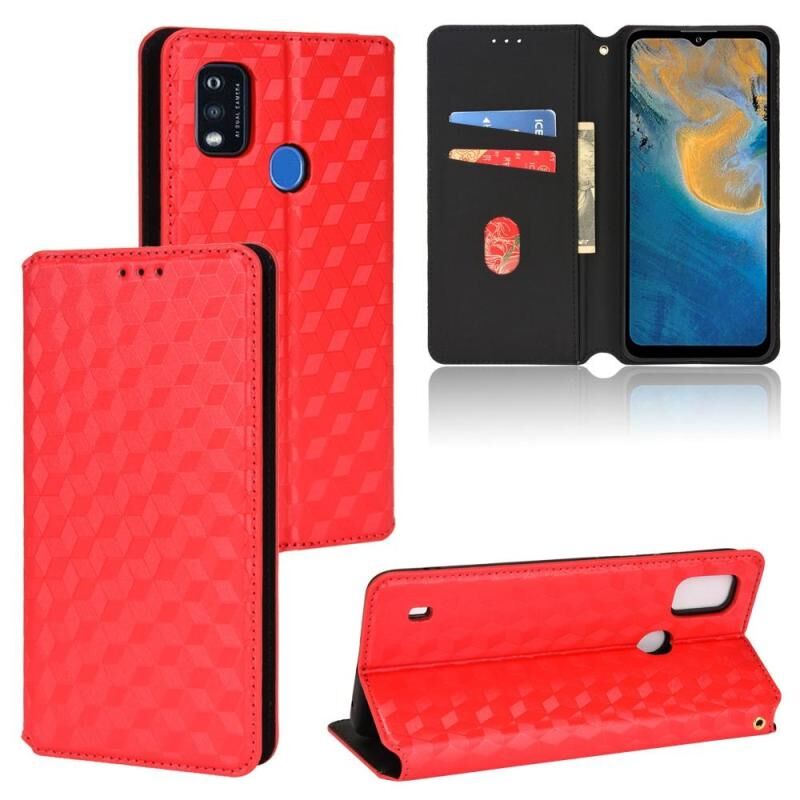 For ZTE Blade A51 Cubic Grid Texture Flip Leather Phone Case(Red)