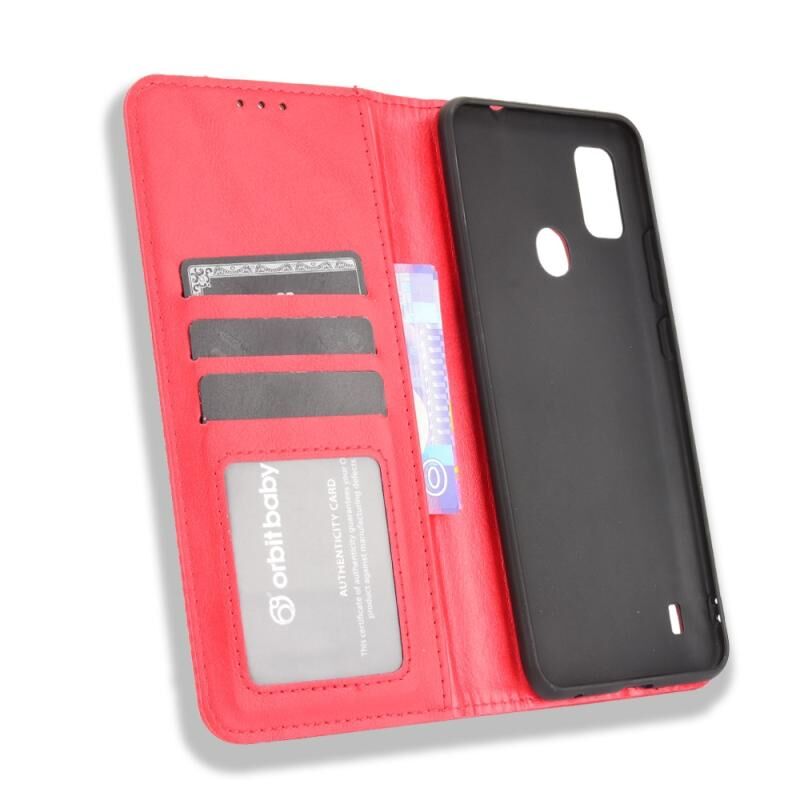 For ZTE Blade A51 Magnetic Buckle Retro Crazy Horse Texture Horizontal Flip Leather Case with Holder & Card Slots & Photo Frame(Red)