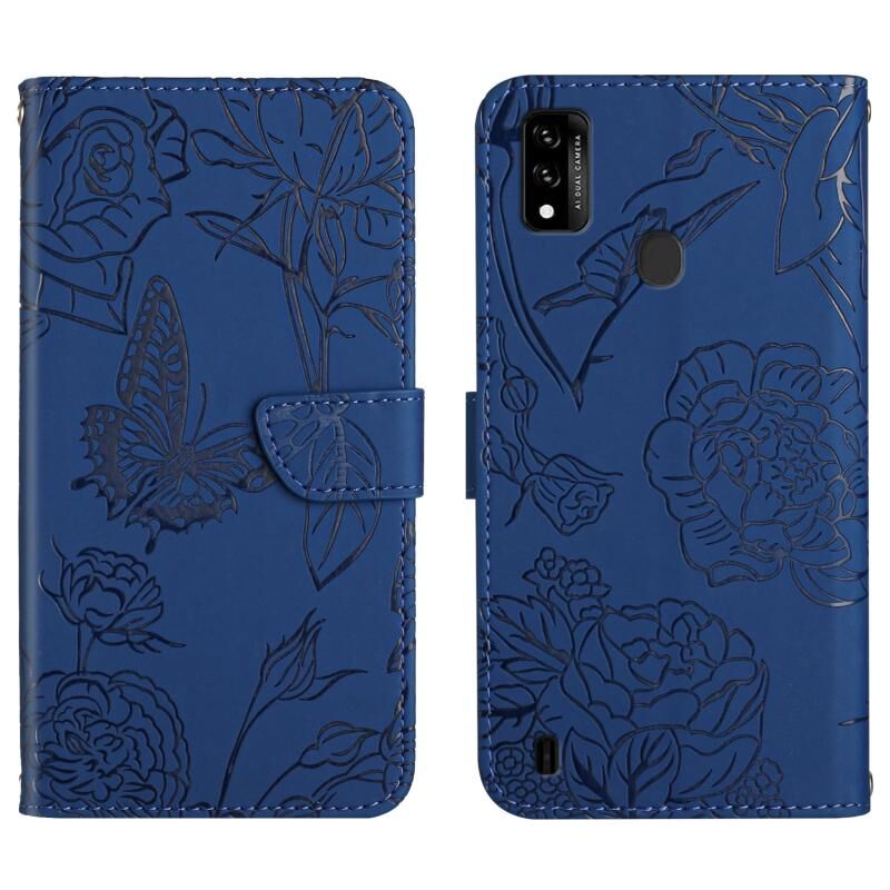 Θήκη τηλεφώνου από δέρμα με ανάγλυφο σχέδιο πεταλούδας και παιώνιας για ZTE Blade A51 (Κόκκινο)
