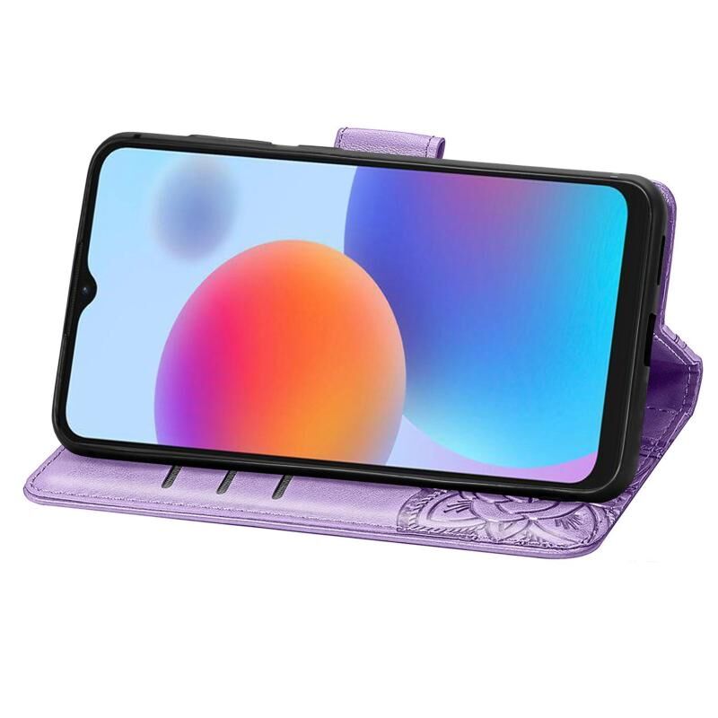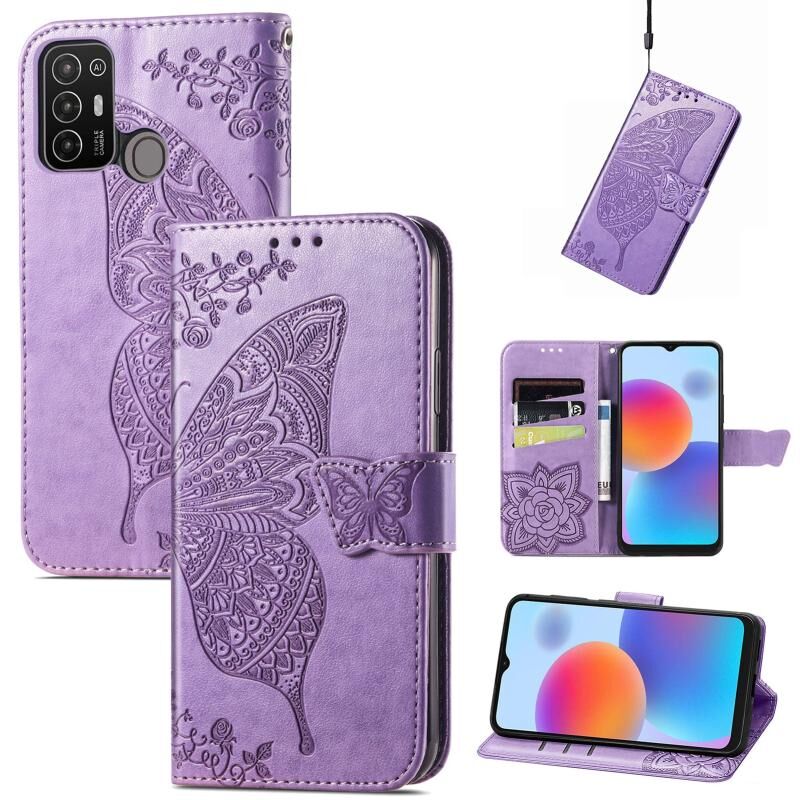 Θήκη τηλεφώνου από δέρμα με ανάγλυφο σχέδιο πεταλούδας και λουλουδιών για ZTE Blade A52 (Λεβάντα)