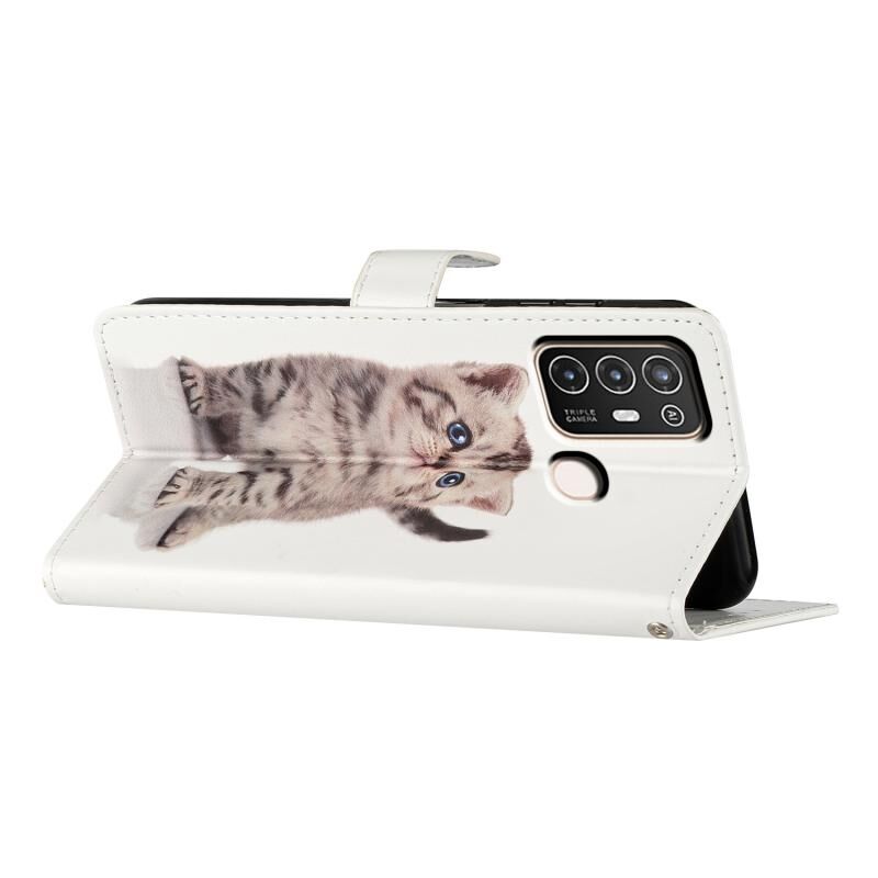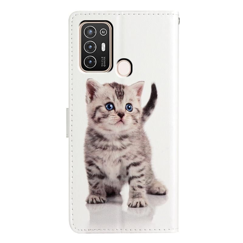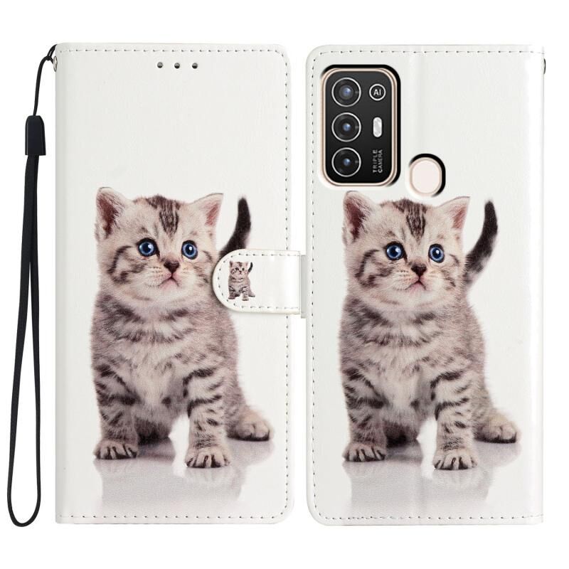 Θήκη τηλεφώνου από δέρμα με σχέδιο για ZTE Blade A52 (Μικρή ριγέ γάτα)