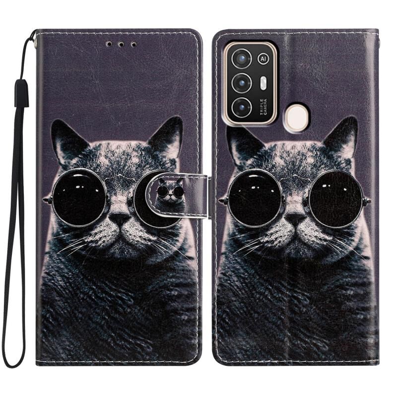 Θήκη τηλεφώνου από δέρμα με σχέδια για ZTE Blade A52 (Γάτα με γυαλιά ηλίου)