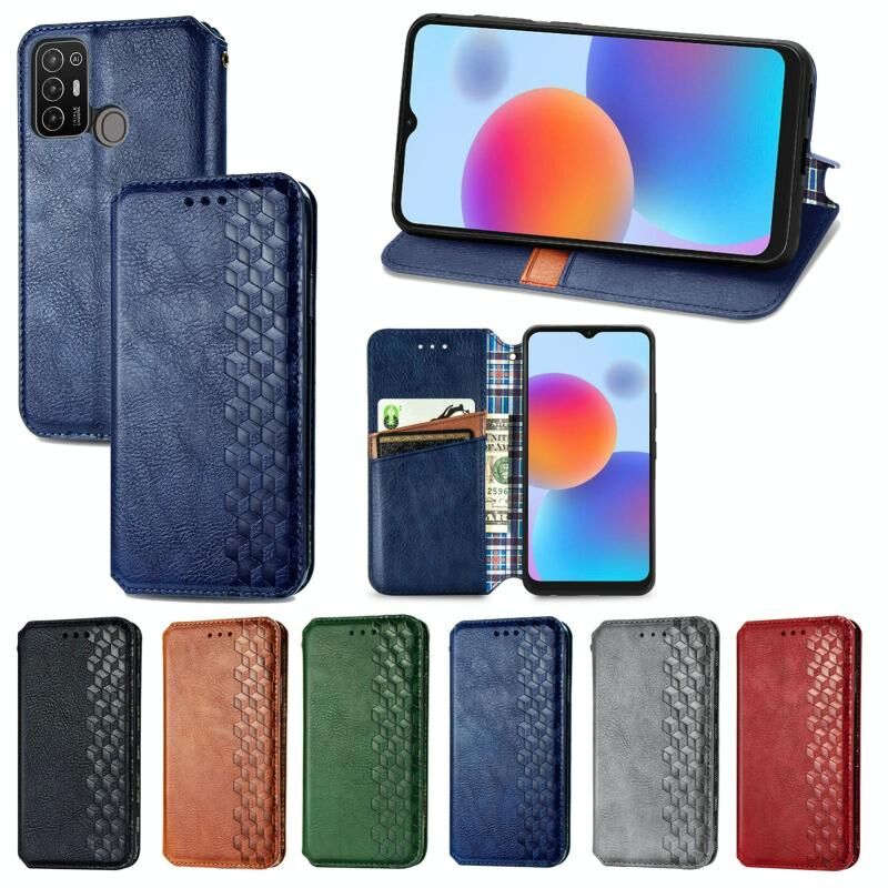 Για ZTE Blade A52 Cubic Grid Πιεσμένο μαγνητικό δέρμα τηλέφωνο υπόθεση (κόκκινο)