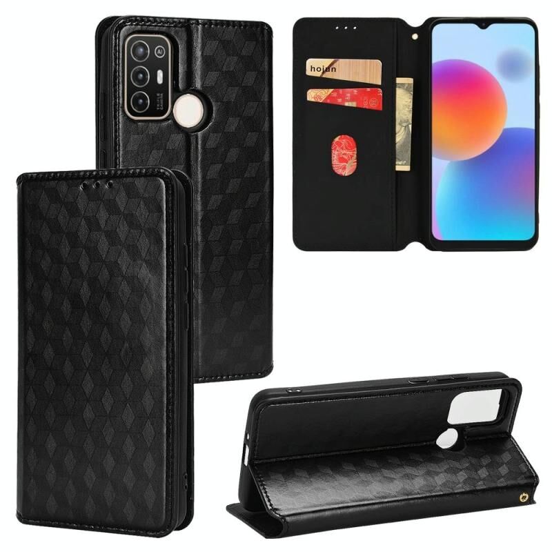 For ZTE Blade A52 Cubic Grid Texture Flip Leather Phone Case(Black)