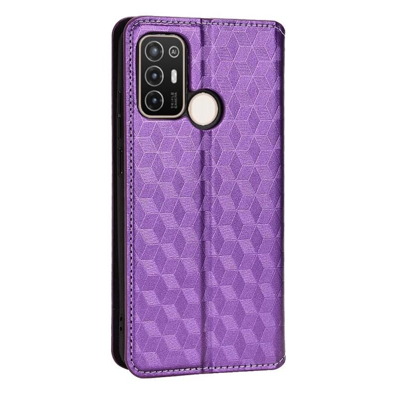 For ZTE Blade A52 Cubic Grid Texture Flip Leather Phone Case(Purple)