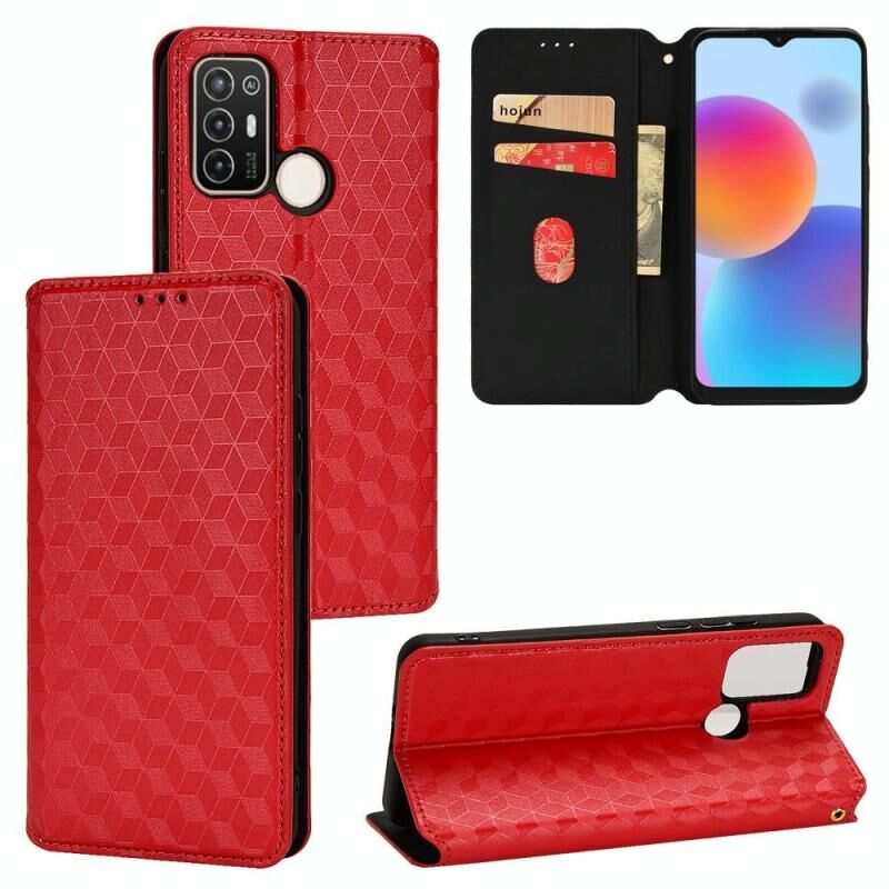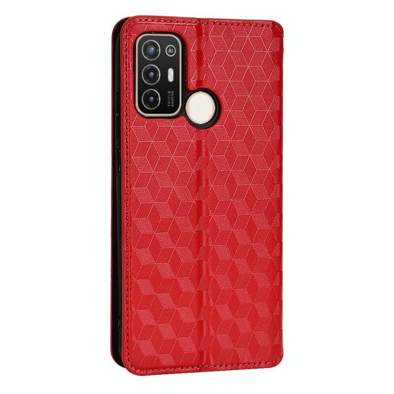 For ZTE Blade A52 Cubic Grid Texture Flip Leather Phone Case(Red)
