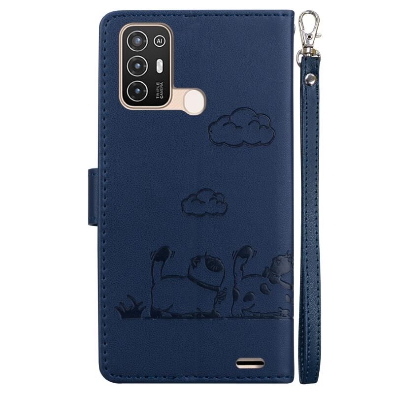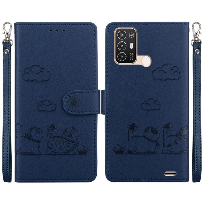 Θήκη τηλεφώνου από δέρμα RFID με χαριτωμένες γάτες για ZTE Blade A52 (Χρυσό Ρόδι)