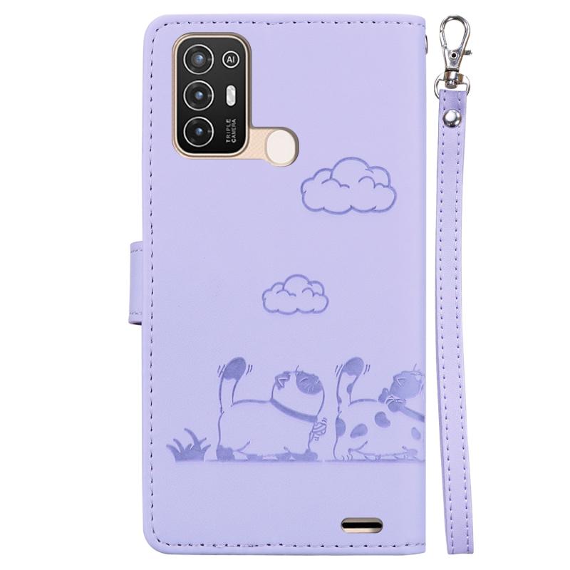 For ZTE Blade A52 Cute Cats RFID Leather Phone Case(Purple)