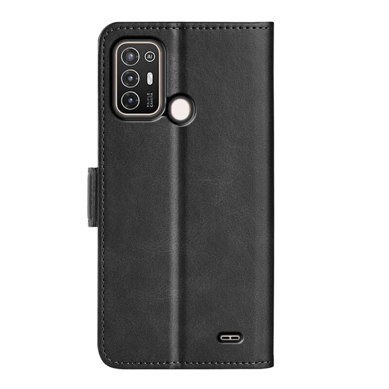Για ZTE Blade A52 Διπλής όψης μαγνητική πόρπη δερμάτινη θήκη τηλεφώνου (μαύρο)