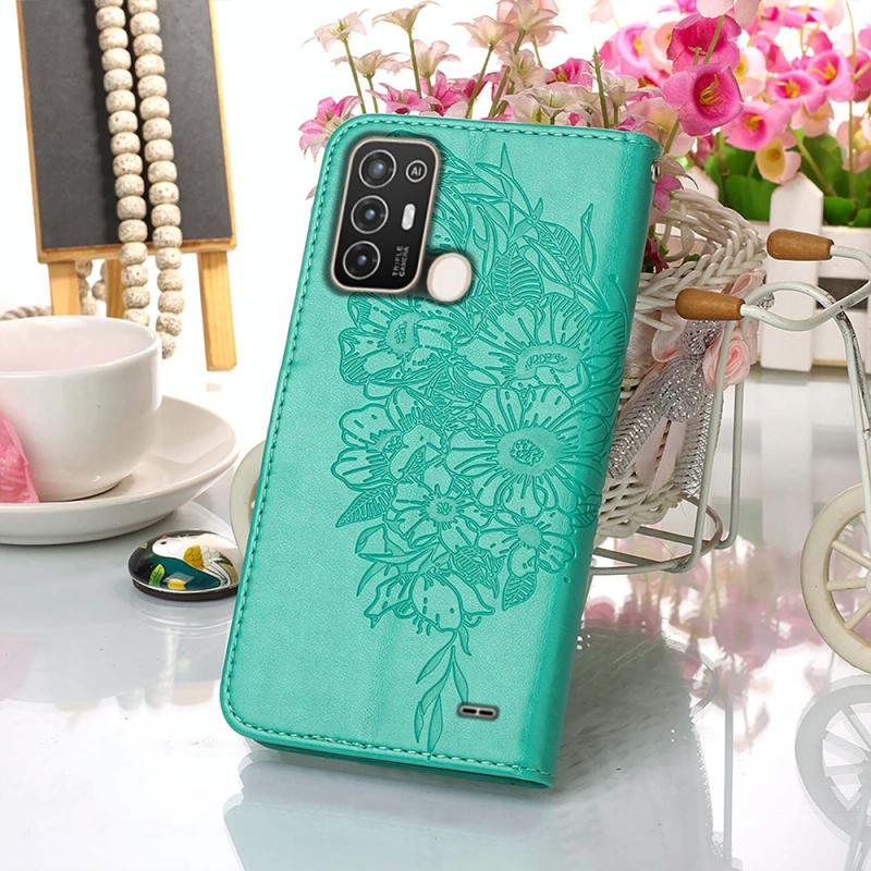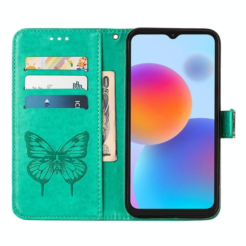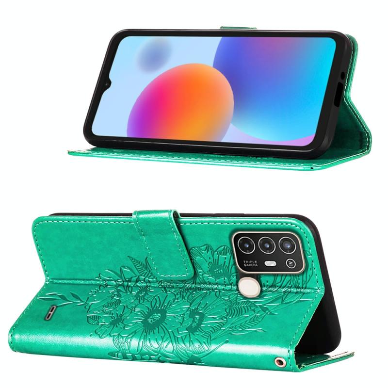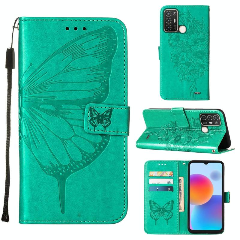 For ZTE Blade A52 Embossed Butterfly Flip Leather Phone Case(Green)