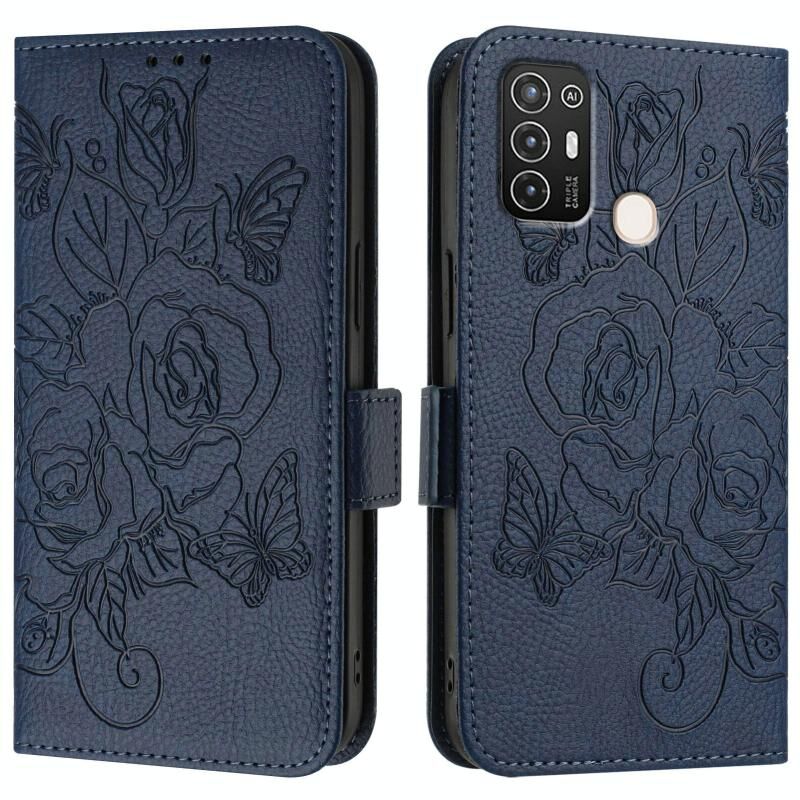 For ZTE Blade A52 Embossed Rose RFID Anti-theft Leather Phone Case(Dark Blue)