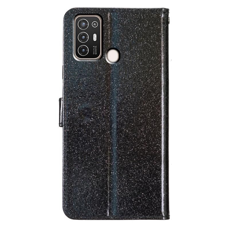 Για ZTE Blade A52 Glitter Powder Flip δερμάτινη θήκη τηλεφώνου (μαύρο)