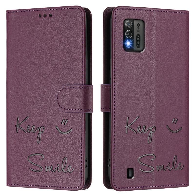 For ZTE Blade A52 Lite Smile Embossing RFID Leather Phone Case(Violet)