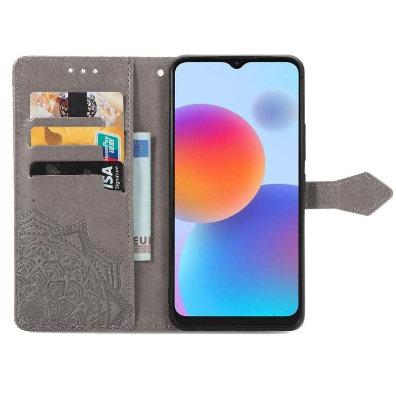 Για ZTE Blade A52 Mandala λουλούδι ανάγλυφο δερμάτινη θήκη τηλεφώνου (γκρι)