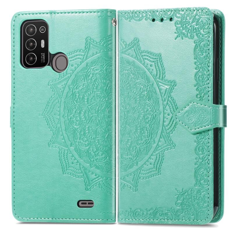 Για ZTE Blade A52 Mandala λουλούδι ανάγλυφο δερμάτινη θήκη τηλεφώνου (πράσινο)