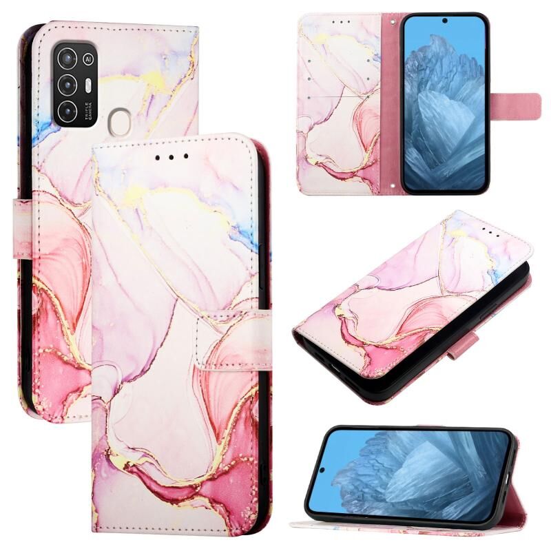 Θήκη τηλεφώνου από δέρμα με σχέδιο μαρμάρου για ZTE Blade A52 PT003 (Ροζ, Μωβ, Χρυσό)